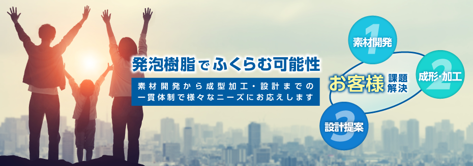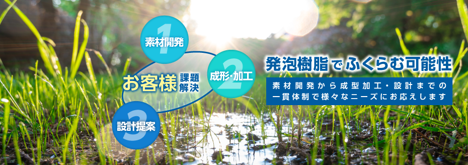 私たちは、マーケットからの要望に基づいて、化学メーカーとして「多様な素材」と「各種の加工技術」を用い、カネカならではの特徴ある発泡製品を開発してお届けすることにより、社会的な課題解決に貢献して参ります。