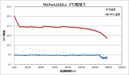 TACPack®(タックパック)は、カネカグループの玉井化成㈱の商品名です。TACPack®(タックパック)は断熱容器により外気からの熱流入を小さくし、更に断熱容器内に搭載したPATTHERMO®(パッサーモ)が移動した熱エネルギーを授受し断熱容器内の温度を一定時間、定めた温度領域を保持することを意図して設計されています(パッケージ内熱流入及び抑制簡易図参照) 。