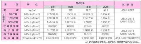 *カネパール® YD成形品の数値は、密度173kg/㎥品での実測値です